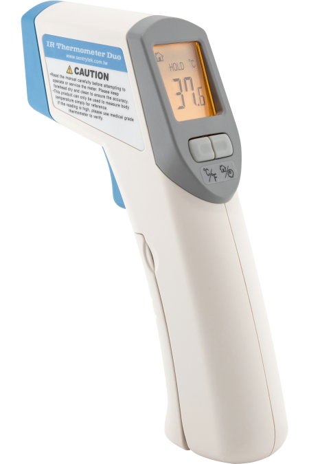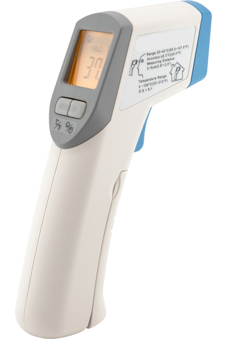 - Simply press the trigger and read temperature on a large digital display.